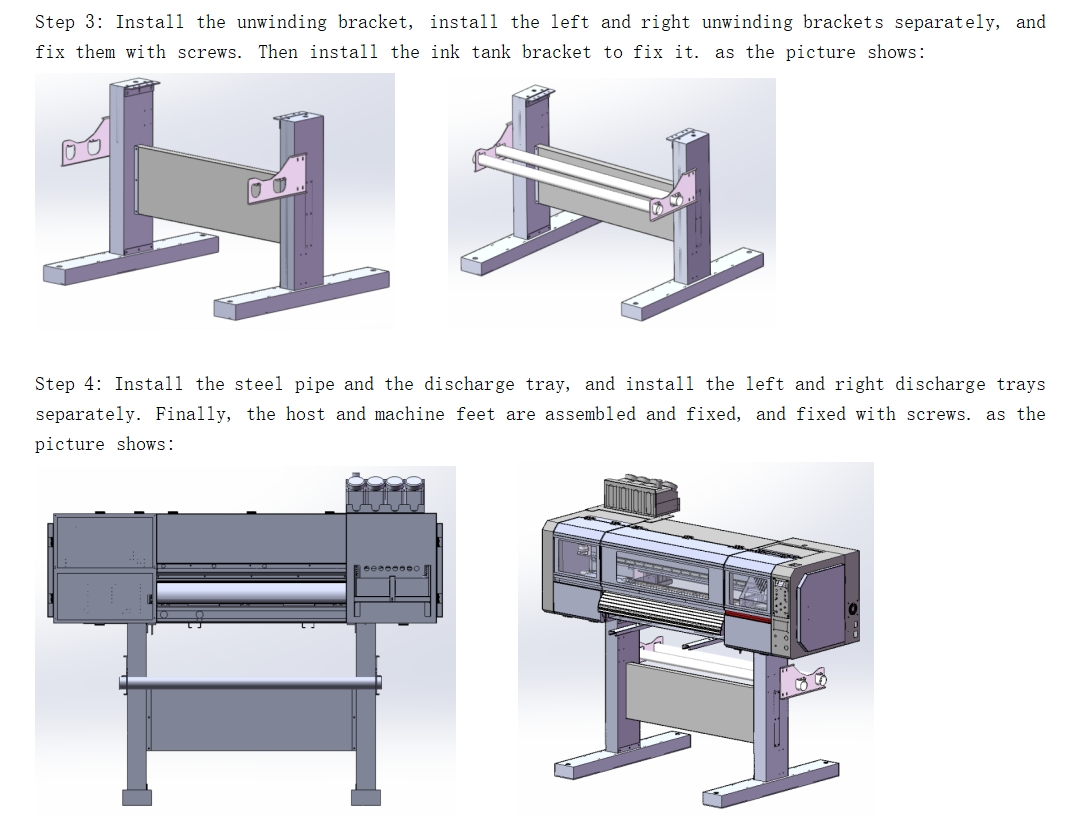 Install the foot according to the drawing or video, install the foot cup and wheel, and fix the printer.
