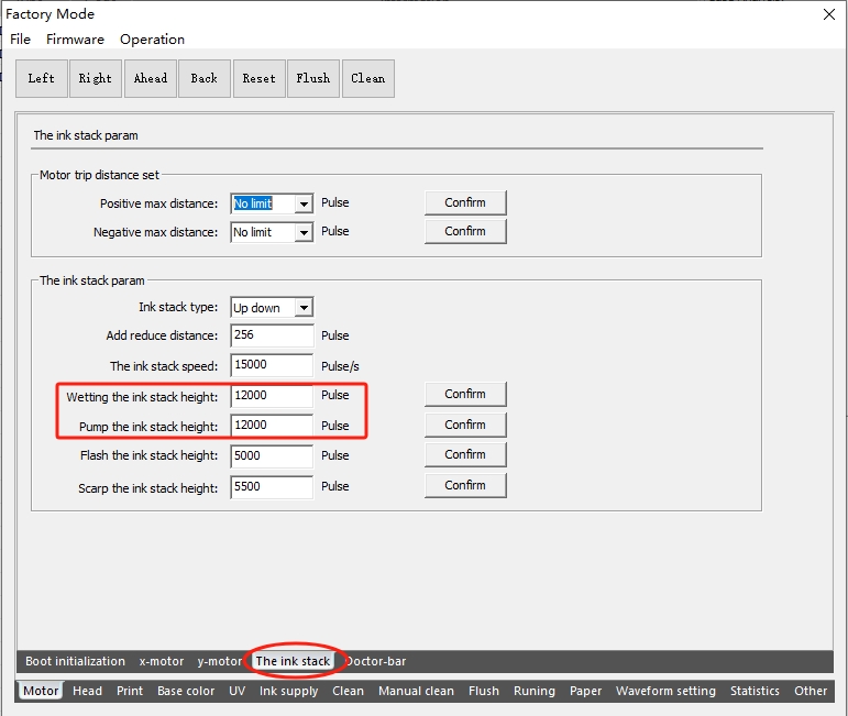 After making minor adjustments, click "Confirm Stroke" to check if the sealing height is appropriate. When the value increases, the ink stack cap rises; when the value decreases, the ink stack cap decreases.
