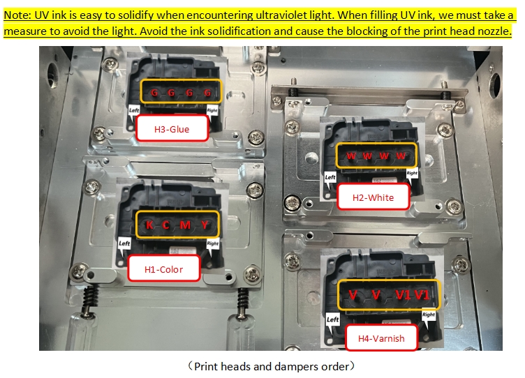 Print heads and dampers order,As shown: