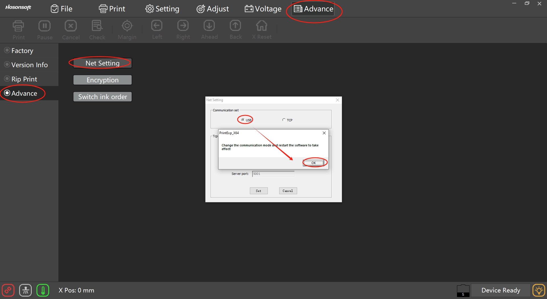 Check the communication set of the software, change it to "USB", and then restart the software.