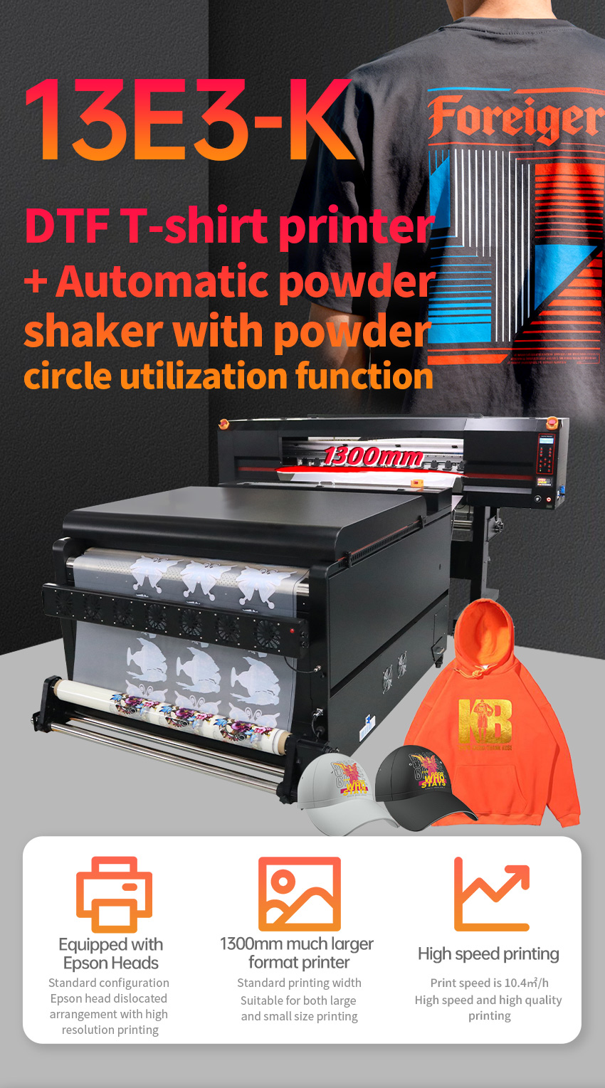 130cm 3 Head DTF T-shirt Printer