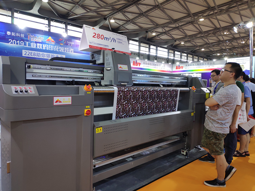 泰拓?cái)?shù)碼科技的8頭機(jī)自今年年初上市后,先后在雙迪培思展會、廣州印花展和上海DPA數(shù)碼印花工業(yè)應(yīng)用展精彩亮相。從幾次展會的現(xiàn)場情況來看,很多客戶之所以被吸引,是因?yàn)楝F(xiàn)場看得見的打印速度。280㎡/h的高速打印小車打印都是唰唰唰的放布和收布,特別是和周圍別家的一對比就更明顯了。