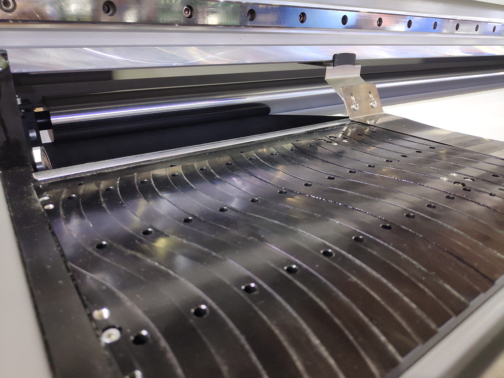 在走紙方式上,8頭機(jī)采用的是進(jìn)口的大膠輥?zhàn)呒?,采用的材料是特殊的耐磨材料,?nèi)硬外軟,將靜電減少到最低,能夠增加走紙的摩擦力,使得走紙時(shí)吸附力更好,更穩(wěn)定、勻速。同時(shí)還不會產(chǎn)生壓紙輪彈簧造成的壓痕。同時(shí)這款機(jī)器還帶有吸風(fēng)平臺,像一個(gè)吸嘴一樣把紙張牢牢的吸附,更是增加了走紙的服帖性,即使是打印35g薄紙,也不會出現(xiàn)卡紙、拱紙的現(xiàn)象,提高了打印速度和生產(chǎn)效率。