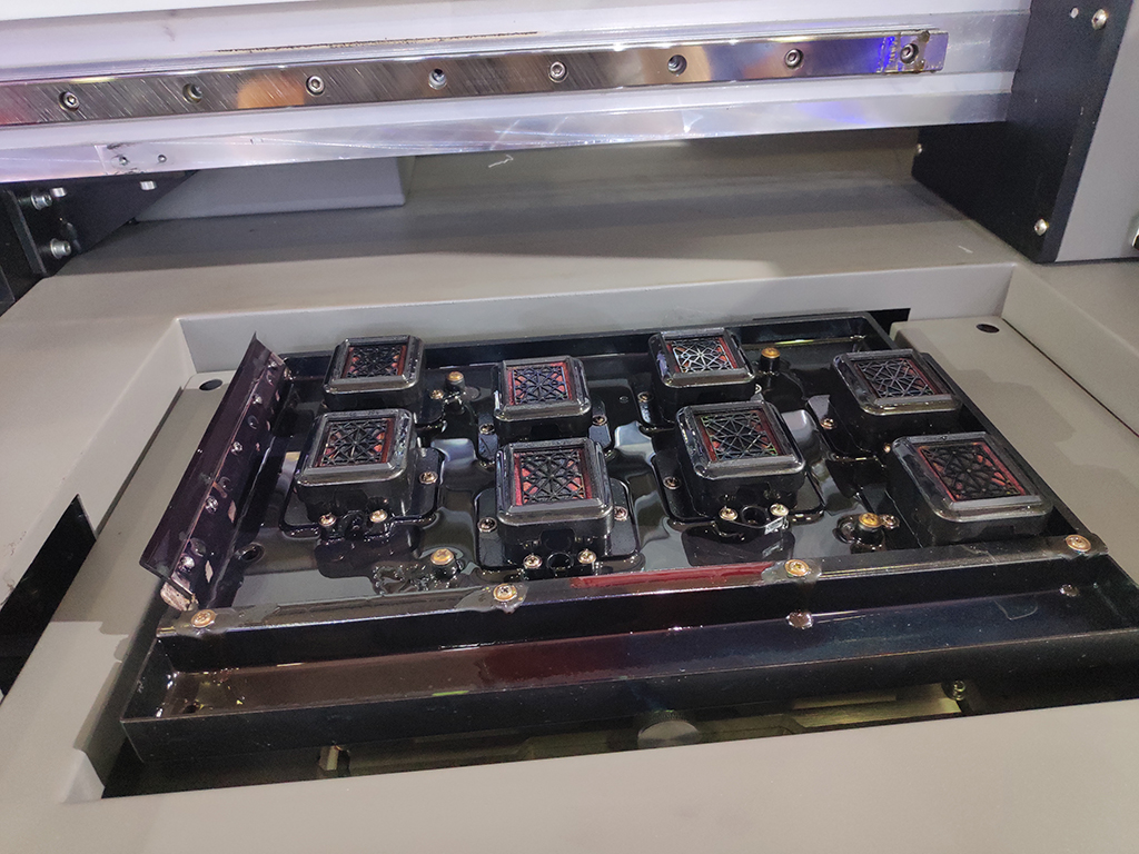 在噴頭配置上,這款數(shù)碼打印機(jī)配置了8個(gè)4720工業(yè)噴頭,一個(gè)噴頭有3200個(gè)噴孔,可適用墨水有:水性、油性、溶劑、uv,涂料、熱升華等,是一款多用途噴頭。在目前的市場上,4720噴頭一經(jīng)推出便以其耐腐蝕性好、適用范圍廣、更加人性化而獲得高度關(guān)注,成為市場上的爆款噴頭。但是很多廠家都是簡單的改成外插式墨囊應(yīng)用生產(chǎn),這樣在使用中就會出現(xiàn)不易清洗、噴頭飛墨、漏墨、堵塞噴頭等情況。泰拓的研發(fā)部在經(jīng)過嚴(yán)格的測試之后在4720噴頭的基礎(chǔ)上發(fā)明了工業(yè)墨路系統(tǒng),發(fā)明了自有的專業(yè)供墨模塊,采用負(fù)壓壓墨、墨墊吸墨的方式,有效避免了打印飛墨、漏墨的現(xiàn)象,同時(shí)還簡化了墨管清洗的程序,可以說是一大技術(shù)革新。