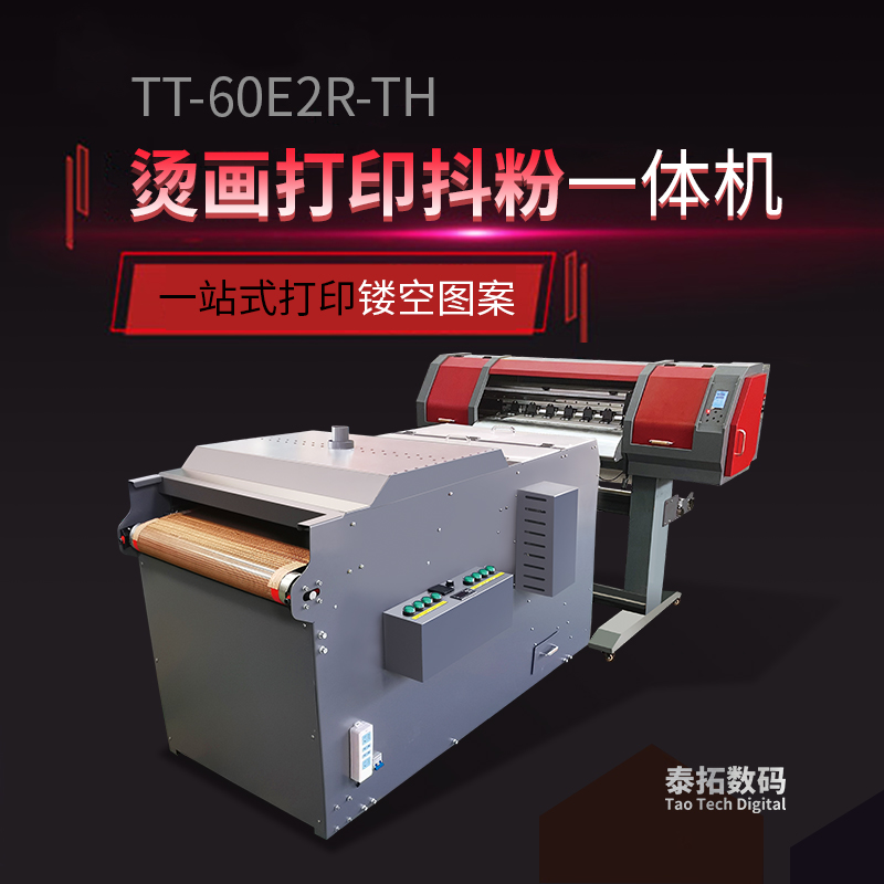 泰拓?cái)?shù)碼的這款柯式燙畫打印抖粉一體機(jī)為給客戶帶來更好的燙畫打印方案,從很多方面進(jìn)行技術(shù)革新,解決了薄膜噴頭容易堵塞、打印系統(tǒng)復(fù)雜以及燙畫牢度不夠等問題。