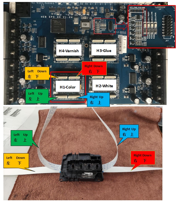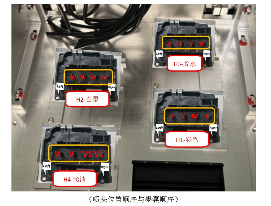 11.安裝打印頭,連接噴頭排線,檢查墨囊