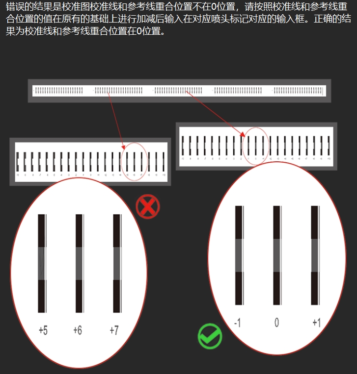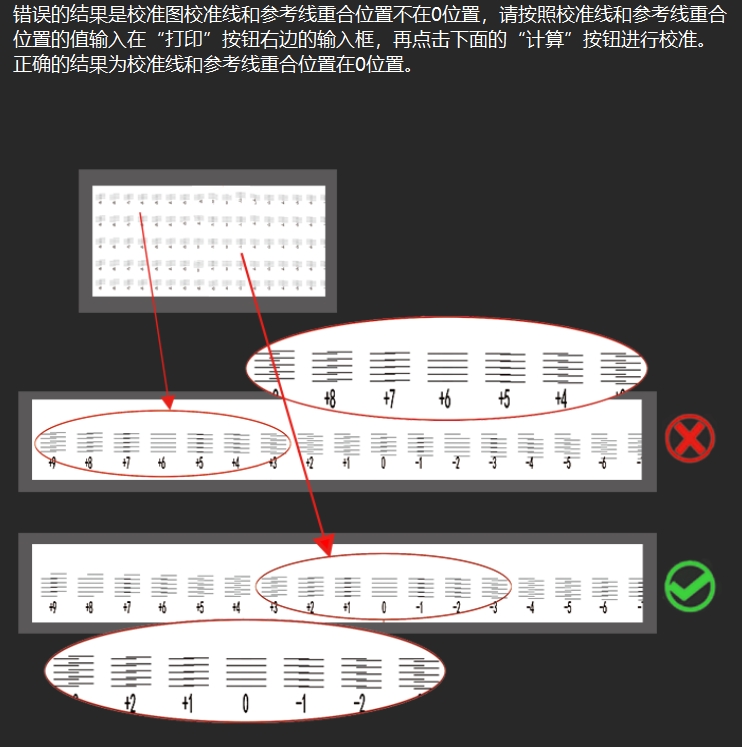 修改數(shù)值,再次打印校準(zhǔn)圖,查看校準(zhǔn)線條的0位置是否對(duì)齊。
