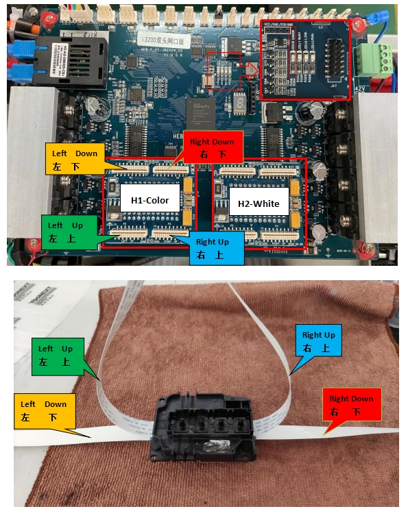 11.安裝打印頭,連接噴頭排線,檢查墨囊