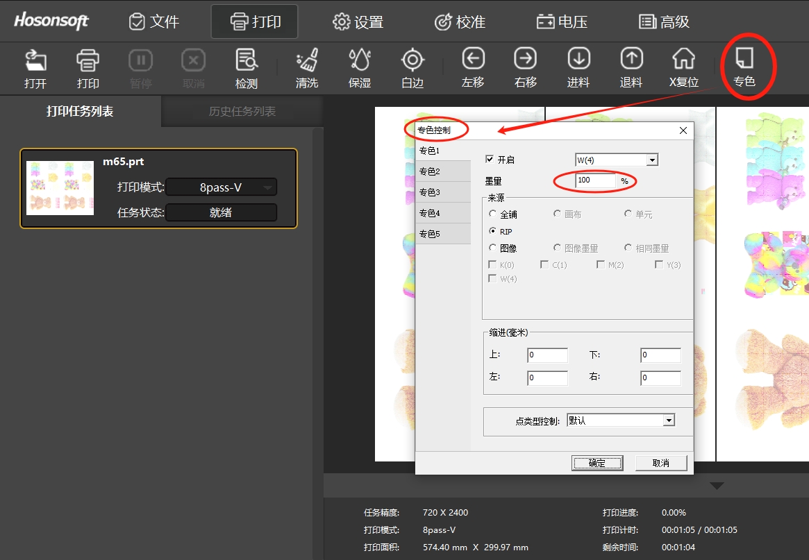 步驟2:檢查打印軟件里面是否有“專色”菜單,查看里面的專色和墨量設(shè)置是否正確