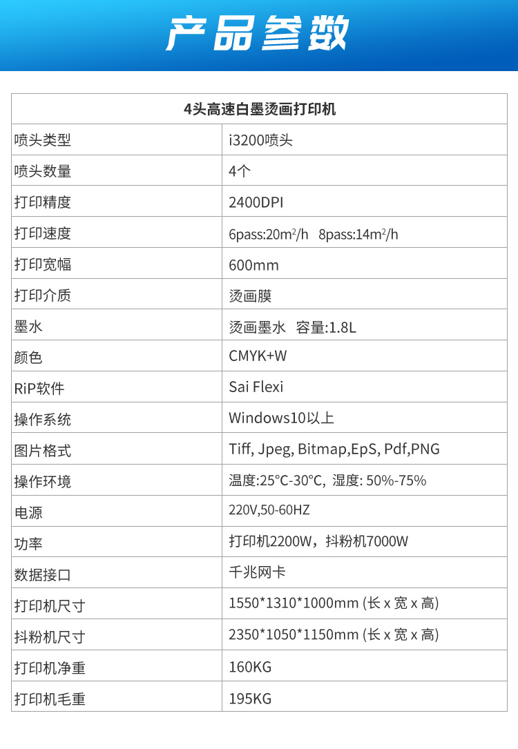 4頭高速白墨燙畫打印機+全自動回粉抖粉機