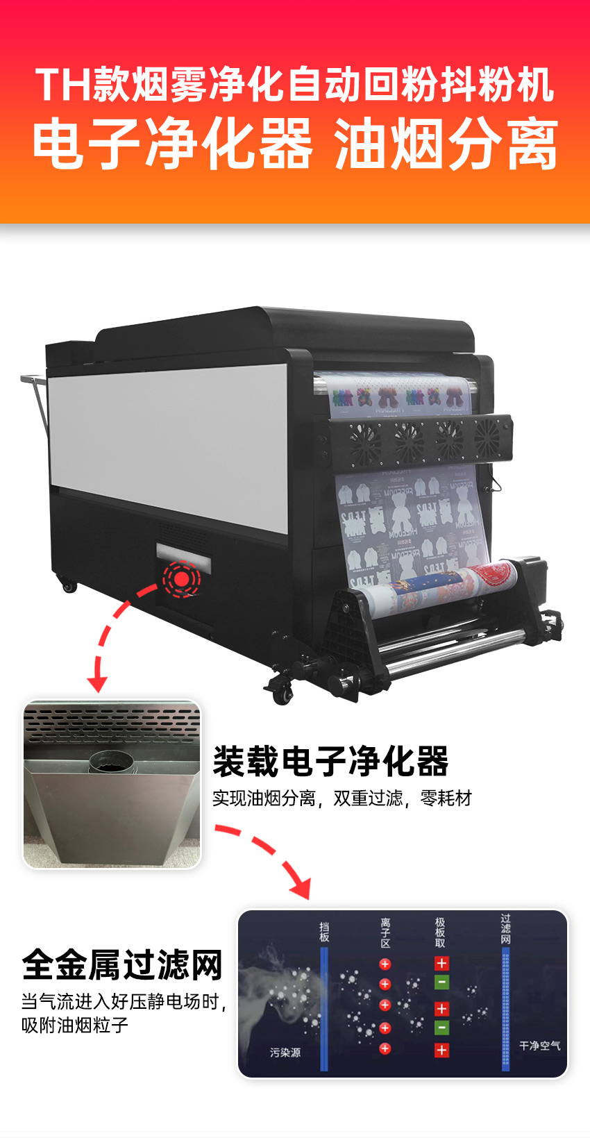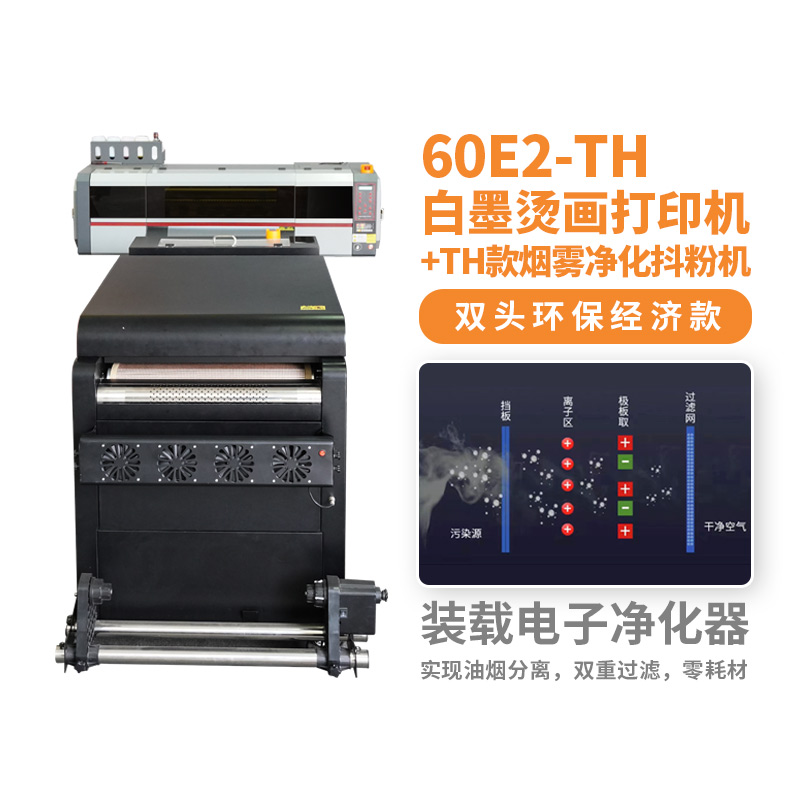 60E2-TH 雙頭白墨燙畫打印機+煙霧凈化自動回粉抖粉機